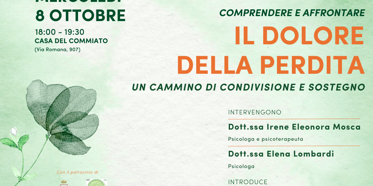 Nessuno vorrebbe farne esperienza, eppure il lutto fa parte della vita di tutti noi. E proprio per per dare un senso a questa esperienza umana universale la Croce Verde di Lucca ha organizzato l’incontro Comprendere e affrontare il dolore della perdita – Un cammino di condivisione e sostegno, previsto per mercoledì 8 ottobre, alle ore 18:00, presso la Casa del Commiato di Lucca (via Romana, 907), gratuito e aperto a tutta la cittadinanza.