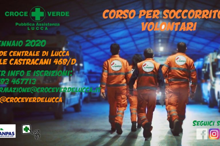 Iscriviti ora! Finalmente si riparte! La Croce Verde di Lucca ha annunciato l’attivazione del nuovo corso gratuito per soccorritori volontari, in partenza per marzo 2022. Non farti scappare quest’opportunità: si tratta di un’occasione unica per entrare nella grande famiglia di questa Associazione, che da più di 125 anni si mette a disposizione della cittadinanza…