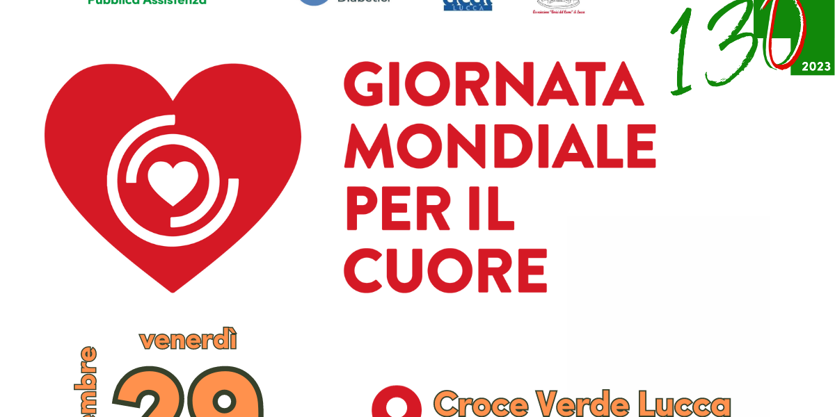 Venerdì 29 settembre 2023, in occasione della Giornata mondiale per il cuore 2023, presso la sede centrale della Croce Verde di Lucca (v.le Castracani 468/D) si terrà una serie di incontri e visite all’insegna della prevenzione, organizzata dal sodalizio in collaborazione con Acat Lucca, Associazione Amici del Cuore di Lucca e Associazione Lucchese Diabetici.