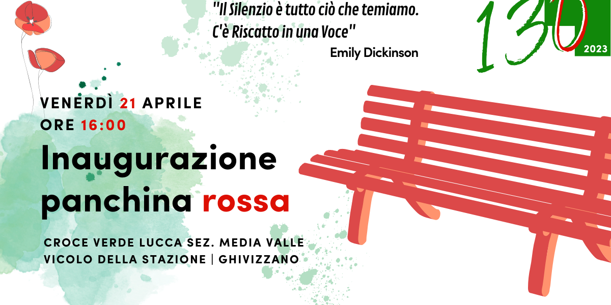 Ghivizzano) verrà inaugurata una panchina rossa, simbolo del contrasto alla violenza di genere, tematica purtroppo ancora di estrema attualità. Sulla panchina verrà apposta una targhetta donata dal centro antiviolenza “Non ti scordar di te”.