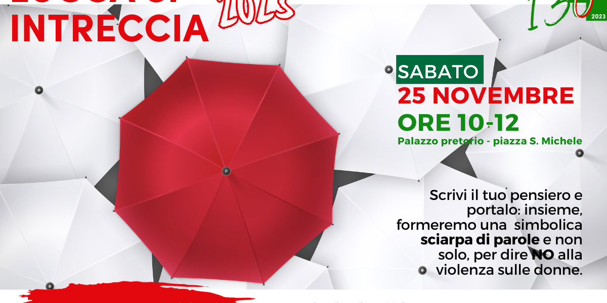 Dopo l’iniziativa da record sulle Mura storiche dello scorso anno, ecco una nuova manifestazione per dire NO alla violenza sulle donne, organizzata ancora una volta da Croce Verde Lucca, Centro Antiviolenza Luna e Auser Filo d’Argento Lucca, con il supporto di Scuole, Istituzioni e Associazioni del territorio. Sabato 25 novembre, in occasione della Giornata Internazionale contro la violenza sulle Donne, con orario 10.00 – 12.00, si terrà in Piazza San Michele e Piazza Napoleone Lucca si intreccia 2023, un evento di sensibilizzazione e riflessione sul fenomeno della violenza di genere, con momenti di partecipazione attiva da parte della cittadinanza.