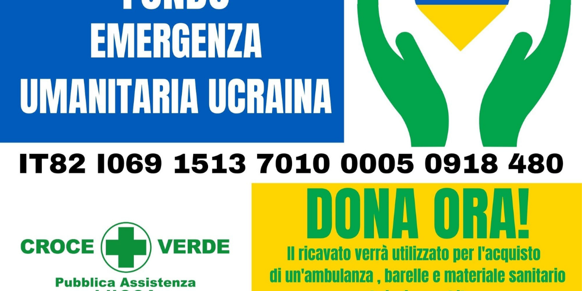 Da oggi, abbiamo attivato anche una raccolta fondi destinata al sostegno della popolazione ucraina. Il ricavato sarà finalizzato all’acquisto di un’ambulanza, barelle e materiale sanitario da inviare subito nei territori di guerra.